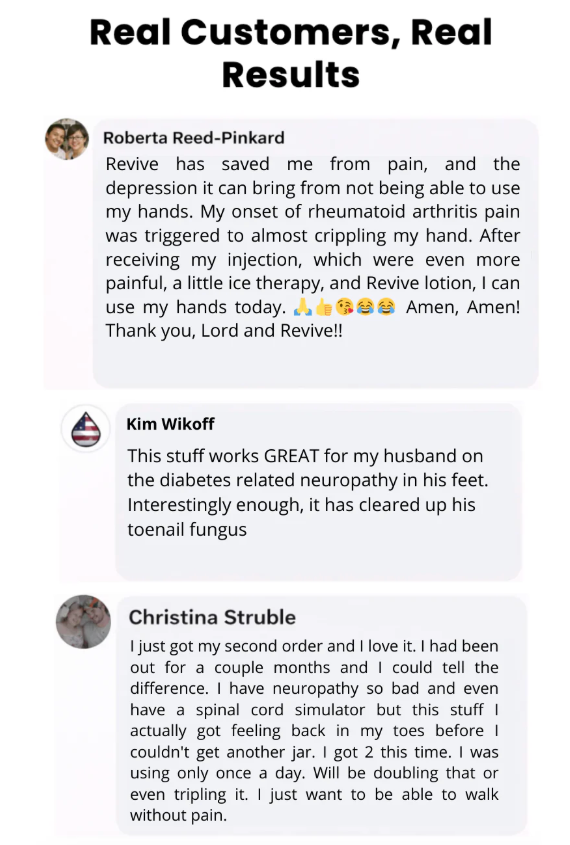 At Revive, we believe in addressing the root cause, not just masking symptoms. That's why our formula is centered around ingredients proven to restore blood flow and deliver oxygen to suffocating nerves.